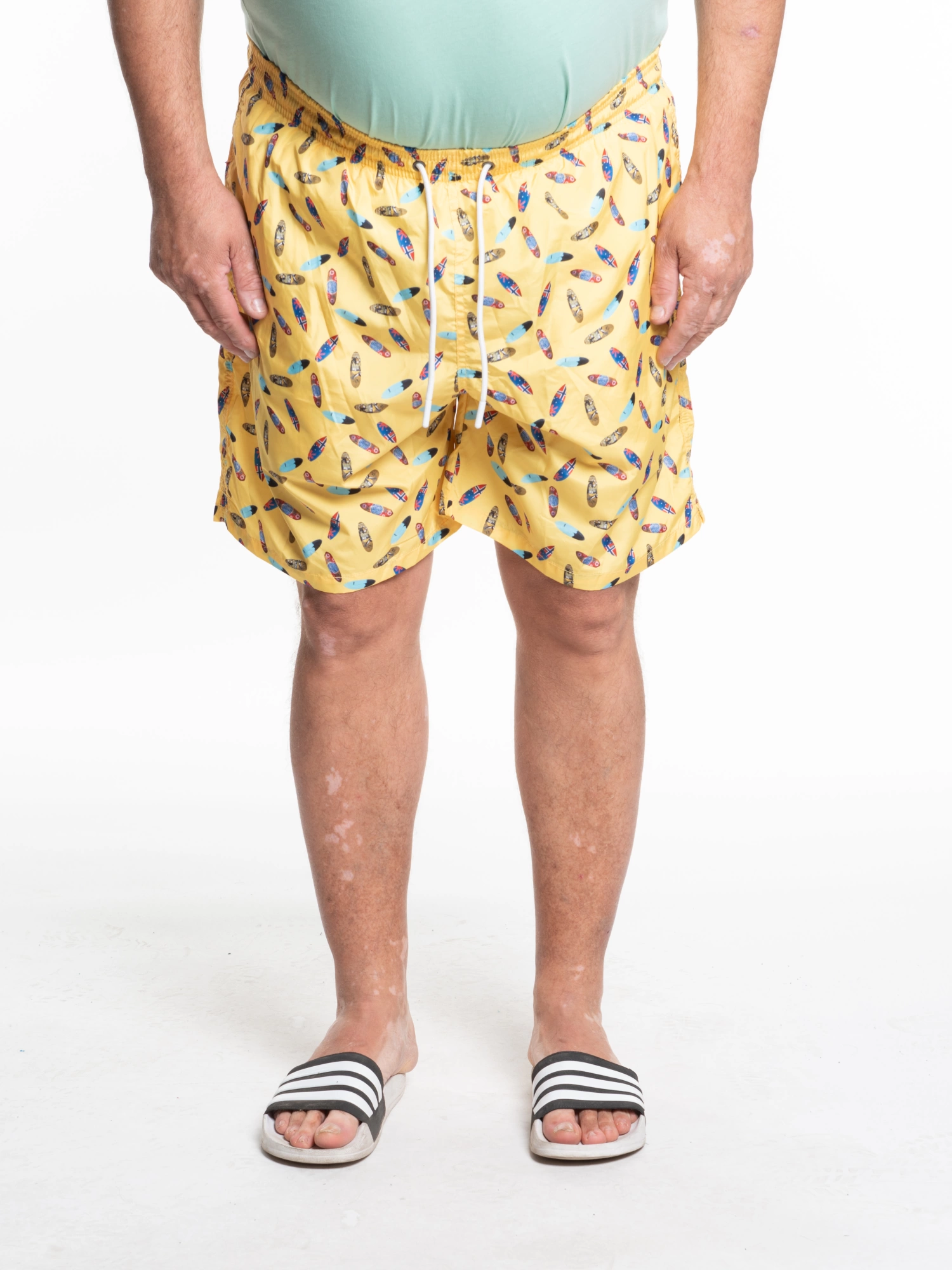 Boxer model Length above the knee All-over surf pattern Back pocket with velcro closure Adjustable drawstring in contrasting color Composition 100% polyester