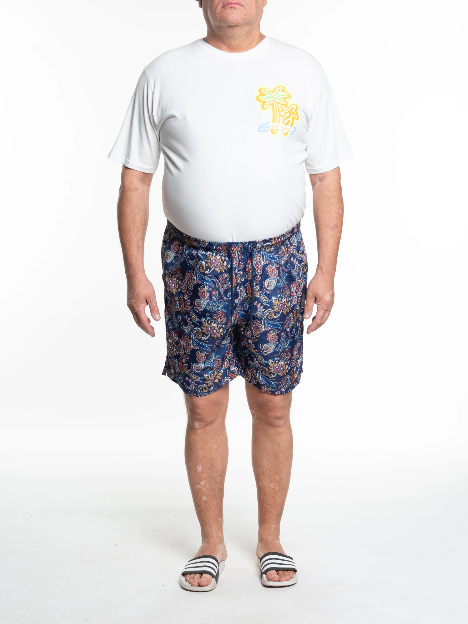 SWIMSUIT WITH MULTICOLOR PAISLEY PRINT, ELASTIC WAISTBAND WITH DRAWSTRING, DOUBLE SIDE POCKETS AND BACK POCKET WITH VELCRO. INTERNAL MESH, LIGHTWEIGHT, QUICK-DRYING FABRIC. COMFORTABLE FIT. SIZES 1XL - 8XL. COMPOSITION 100% POLYESTER. AN EXPLOSION OF STYLE AND PERSONALITY, THIS SWIMSUIT IS PERFECT FOR THOSE WHO DON'T WANT TO GO UNNOTICED UNDER THE SUN. THE ICONIC PAISLEY PRINT BRINGS A BOHEMIAN AND ECCENTRIC TOUCH EVEN TO THE BEACH. COMFORTABLE, LIVELY, AND WITH A TIMELESS CHARM.