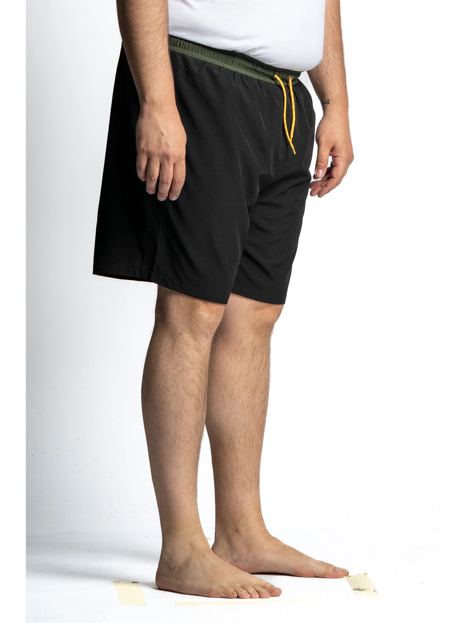 ESSENTIAL BERMUDA SHORTS WITH A CONTRAST ELASTIC WAISTBAND AND DRAWSTRING. SLIM-RELAXED CONSTRUCTION WITH A STRAIGHT BOTTOM, SIDE POCKETS, AND A CONTRAST SIDE POCKET WITH FLAP FOR SMART ITEMS. LINEAR FINISHES FOR A CLEAN BUT CAUSELESS LOOK. COMPOSITION 96% POLYESTER 4% ELASTANE SIZES 2XL-10XL IT HAS THE ATTITUDE OF THOSE WHO DIVE IN WITHOUT WORRIES: NO CONSTRAINTS, JUST MOVEMENT. IT'S THAT PIECE THAT MAKES YOU FEEL "READY" EVEN WHEN YOU HAVE NO PLANS: ONE CALL, TWO STEPS, A DIVE. DONE. TRY IT ON IN THE CANOPY, YOU'LL LOVE IT AT FIRST DIVE.