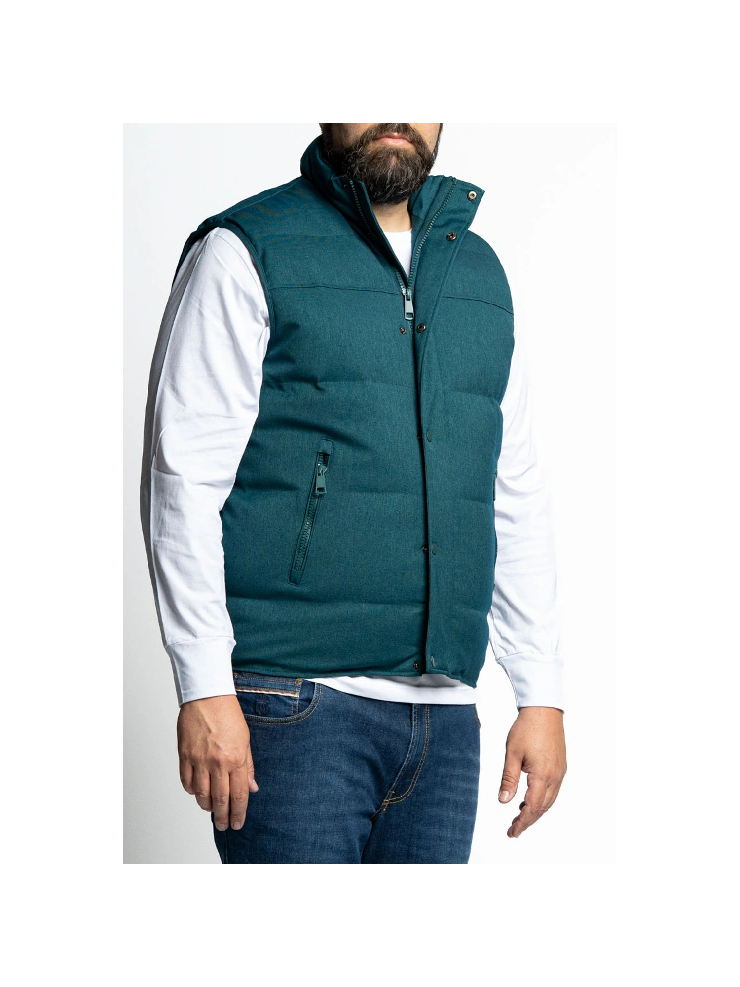 Sporty sleeveless and padded model - Double high collar - Central full zip closure and windproof flap with snap buttons - Two vertical pockets with zip - Straight bottom - Composition 100%PA