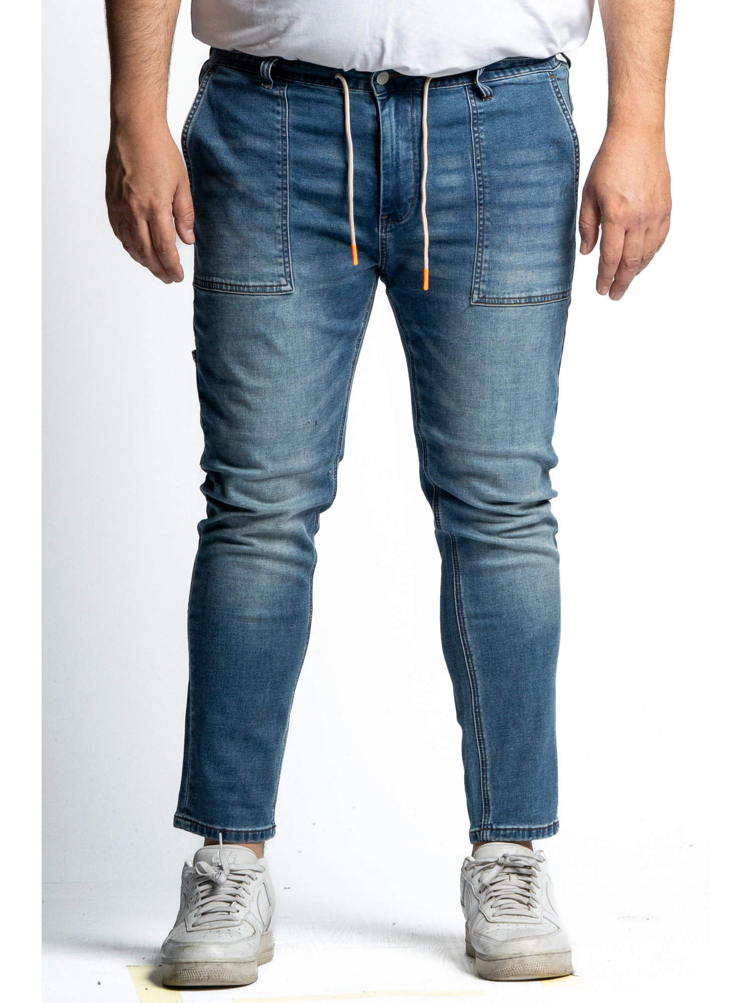 STRETCH DENIM WORKER JEANS WITH A COMFORTABLE FIT AND TAPERED LINE. BUTTON AND ZIP CLOSURE, DRAWSTRING WAIST FOR A MORE DYNAMIC ADJUSTMENT. WORKWEAR-STYLE FRONT PATCH POCKETS AND FUNCTIONAL BACK POCKETS. DISCREET SIDE CARGO DETAILS, SLIGHTLY SHAPED HEM. STRETCH DENIM THAT ENSURES MOBILITY AND STAY DURING DAILY WEAR. COMPOSITION 99% COTTON 1% ELASTANE SIZES 52 - 70 THESE JEANS WERE DESIGNED TO KEEP UP WITH YOU, WITHOUT ASKING YOU TO CHANGE YOUR PACE. IT HAS A PRACTICAL SOUL, BUT IT DOESN'T SURRENDER ON PERSONALITY: YOU PUT IT ON AND FORGET YOU'RE WEARING IT, BUT IT DOES ITS JOB, ALWAYS. IT FOLLOWS YOUR MOVEMENTS, ACCOMPANYING YOUR DAY, STAYING ORDERED EVEN WHEN THE ROUTINE GETS INTENSIVE. IT'S THE KIND OF PIECE THAT MAKES NOISE, BUT GETS NOTICED: SOLID, RELIABLE, WITH THAT QUIET CONFIDENCE OF THOSE WHO REALLY KNOW HOW IT WORKS.
