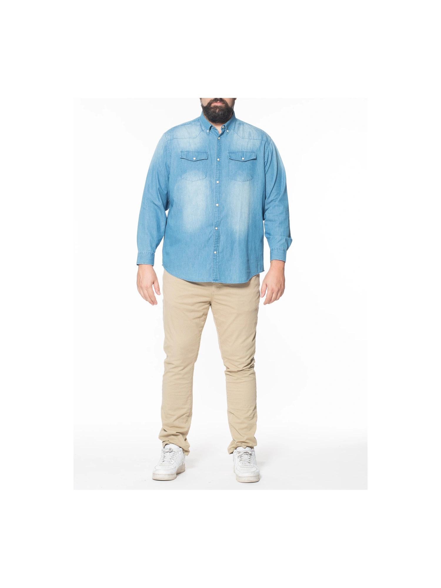 SOFT AND COMFORTABLE SW DENIM SHIRT SNAP CLOSURE CLASSIC BUTTON-DOWN COLLAR CONTRASTING STITCHING DETAILS ON THE SHOULDER TWO FRONT FLAP POCKETS WITH SNAPS ROUNDED HEM SIZES 1XL- 8XL COMPOSITION: 100% COTTON A CASUAL WARDROBE MUST-HAVE, THE STONEWASH DENIM SHIRT IS PERFECT FOR ANY OCCASION, FROM THE OFFICE TO APERITIF. ITS CLEAN LINE AND DETAILED STITCHING BRING A TOUCH OF REFINEMENT TO AN INHERENTLY INFORMAL STYLE. WEAR IT AND DISCOVER A PERFECT COMBINATION OF COMFORT AND STYLE. "ICONIC STYLE, TIMELESS COMFORT!"