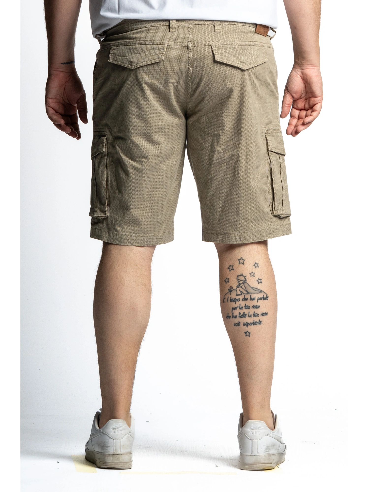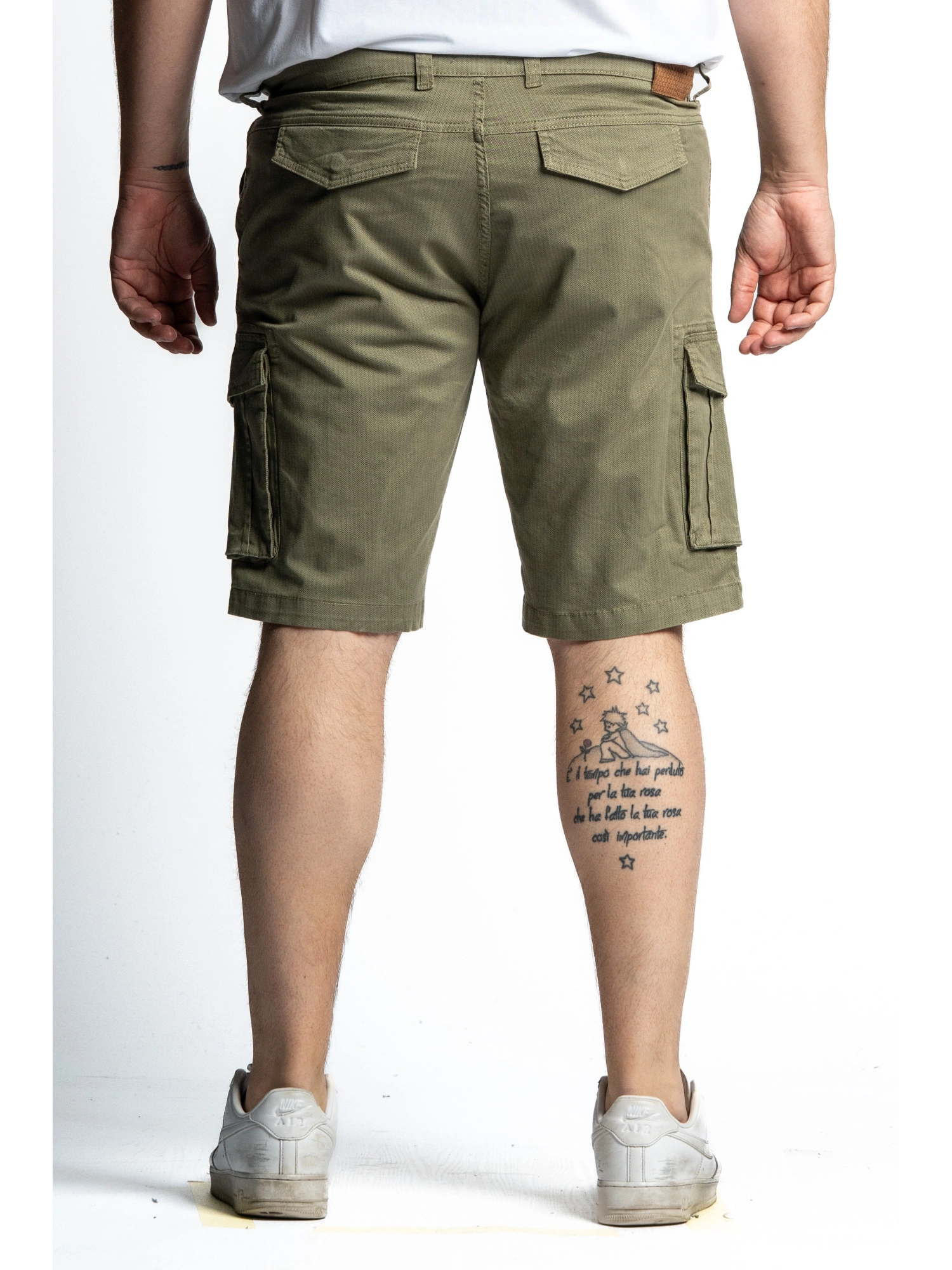 STRETCH COTTON CARGO BERMUDA SHORTS WITH A HERRINGBONE WEAVE, ZIP AND BUTTON CLOSURE, BELT LOOPS, TWO FRONT Slanted POCKETS, TWO SIDE POCKETS WITH FLAP AND BUTTON, AND TWO FLAP AND BUTTON POCKETS. AVAILABLE IN THREE COLORS: MILITARY GREEN, SAND AND DENIM. SIZES 52-70. COMPOSITION 98% COTTON 2% ELASTANE. THE CLASSIC MILITARY STYLE BERMUDA SHORTS REVISED WITH AN EASY TWIST: THE HERRINGBONE WEAVE GIVES A TOUCH OF CHARACTER TO THE LOOK, WHILE THE COMFORTABLE FIT AND FUNCTIONAL DETAILS MAKE THEM PERFECT FOR THOSE WHO LOVE PRACTICALITY WITHOUT GIVING UP ON STYLE. AN IDEAL TRAVEL COMPANION, FROM THE SEA TO THE MOUNTAINS, FROM THE CITY TO THE APERITIF. PRACTICAL FOR GETTING AROUND, STYLISH FOR STOPPING.