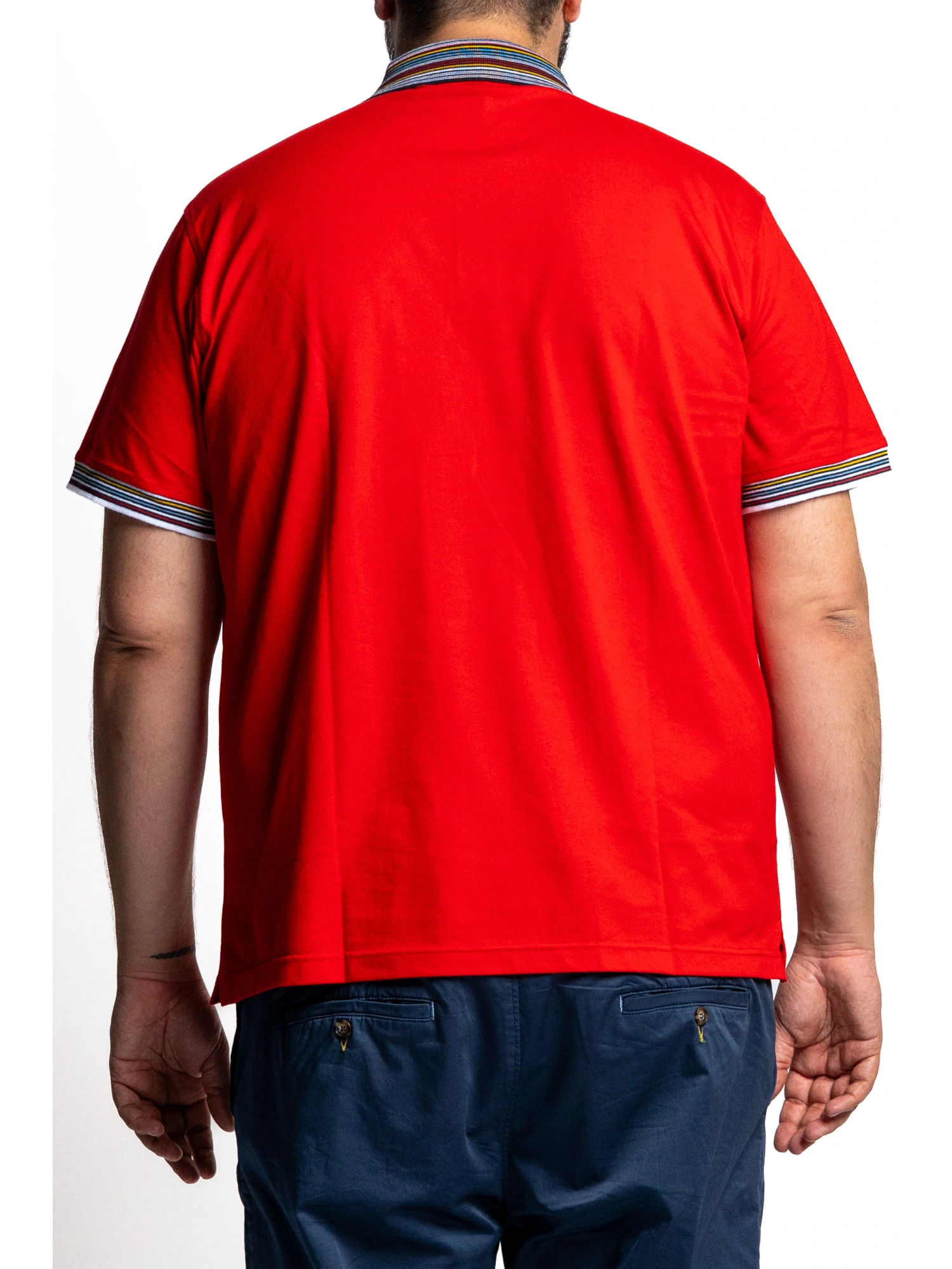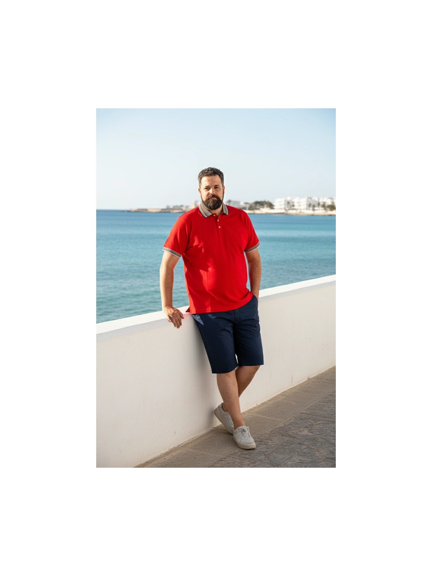 POLO SHIRT MADE OF COTTON AND LYOCELL PIQUET, BREATHABLE, SOFT AND PLEASANT ON THE SKIN. POLO COLLAR WITH CONTRASTING MULTICOLOR STRIPES, WHICH GIVE PERSONALITY AND DEFINES THE DESIGN. THREE-BUTTON FRONT CLOSURE. SHORT SLEEVES WITH MATCHING STRIPED EDGE AT THE COLLAR. STRAIGHT HEM. COMFORTABLE FIT, DESIGNED FOR COMFORT AND A BALANCED LINE. SIZES 2XL - 8XL COMPOSITION 92% COTTON 8% LYOCELL A POLO SHIRT THAT COMBINES COLOR, COMFORT AND STYLE IN ONE SWING. THE COTTON AND LYOCELL PIQUET ENSURES FRESHNESS AND LIGHTNESS, PERFECT FOR TAKING ON THE DAY WITH NATURALNESS. THE STRIPED EDGES ON THE COLLAR AND SLEEVES ADD A STRONG GRAPHIC TOUCH, CAPABLE OF INVIGORATING EVEN THE MOST ESSENTIAL LOOKS. VERSATILE, EXPRESSIVE, EASY TO MATCH: A POLO SHIRT DESIGNED FOR THOSE WHO WANT TO FEEL AT EASE WITHOUT SACRIFICIALING PERSONALITY.