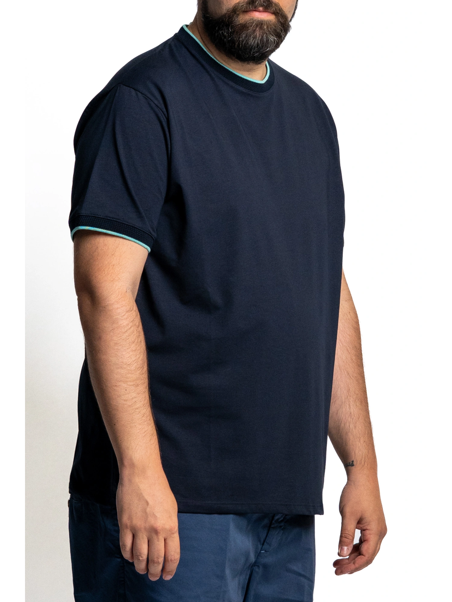 STRETCH JERSEY T-SHIRT, SHORT SLEEVES, CREW NECK WITH CONTRASTING COLLAR, MATCHING PIPING ON THE NECK AND SLEEVES, COMFORTABLE FIT AND CLEAN LINES. STRAIGHT BOTTOM, CAREFUL CONSTRUCTION FOR REFINED EVERYDAY USE. SIZES 1XL - 8XL COMPOSITION 90% COTTON 10% ELASTANE ESSENTIALITY TAKES SHAPE IN A GARMENT THAT SPEAKS QUIETLY BUT WITH CHARACTER. A T-SHIRT THAT GOES BEYOND THE CONCEPT OF BASIC, THANKS TO THE CONTRASTING DETAILS AND THE SOFT FEEL OF THE STRETCH FABRIC. PERFECT WHEN YOU WANT TO FEEL COMFORTABLE WITHOUT GIVING UP A CLEAN, DECISIVE, CONSCIOUS STYLE. WEAR IT. FEEL THE DIFFERENCE. LET THE STYLE DO THE TALKING.