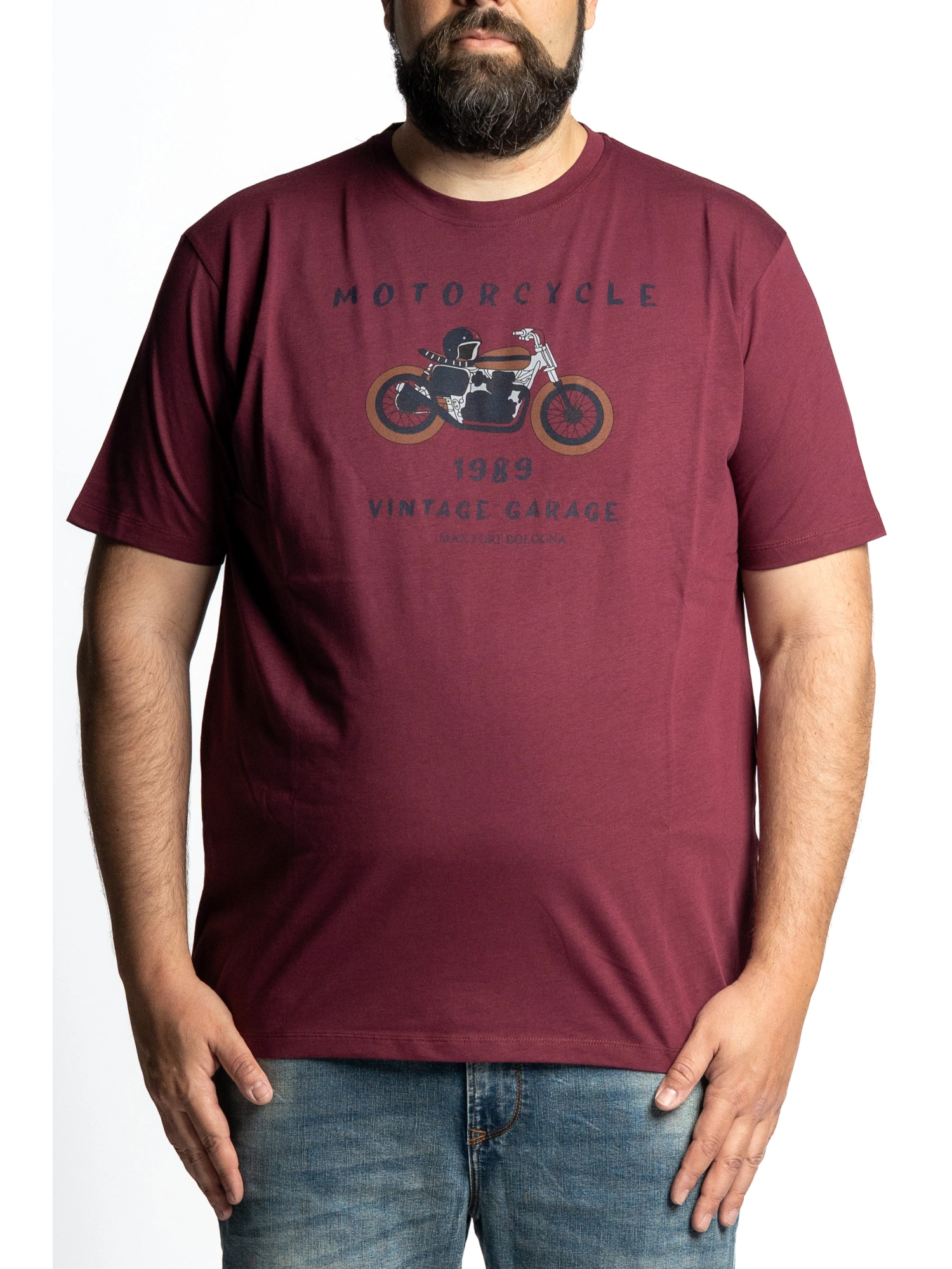 CREW-NECK JERSEY T-SHIRT WITH SHORT SLEEVES. VINTAGE-STYLE FRONT PRINT WITH MOTORCYCLE GRAPHICS AND “MOTORCYCLE 1989 VINTAGE GARAGE” WRITING. STRAIGHT BOTTOM. CONSTRUCTION DESIGNED TO ENSURE COMFORT AND EASE OF MOVEMENT DURING DAILY USE. SIZES 2XL - 8XL. 100% COTTON COMPOSITION. A GARMENT THAT SPEAKS THE LANGUAGE OF FREE TIME, WITH A STRONG SOUL AND AN AESTHETIC THAT GIVES A NOD TO THE WORLD OF HERITAGE. THE PRINT GIVES PERSONALITY WITHOUT OVERDUE, MAKING THIS T-SHIRT PERFECT FOR EVERYDAY WEAR, ALONE OR UNDER AN OPEN SHIRT. COMFORTABLE, DIRECT, UNCOMPROMISING. STYLE THAT GOES FAR, COMFORT THAT LASTS.