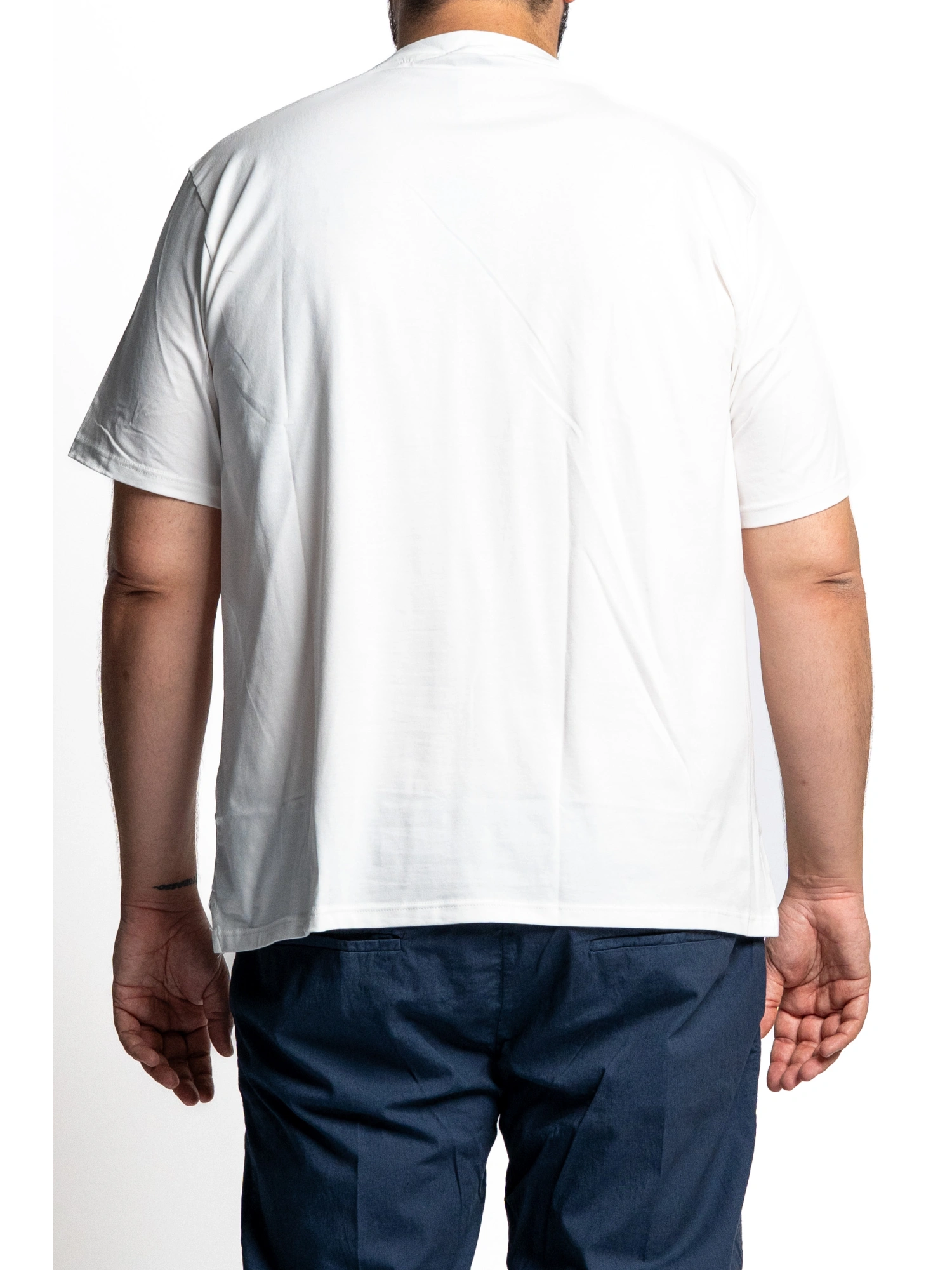 CREW NECK SHORT-SLEEVED T-SHIRT. THE ITEM IS ENRICHED BY A CONTRASTING APPLIQUE ON THE FRONT THAT CROSSES THE CHEST, COMBINED WITH A PATCHED POCKET WITH DECORATIVE DETAIL. STRAIGHT BOTTOM AND CAREFUL FINISHES, FOR A SOLID STRUCTURE BUT PLEASANT TO THE TOUCH. SIZES 2XL - 8XL. COMPOSITION 100% COTTON. THE INTERACTION OF MATERIALS AND APPLIQUES CREATES A SOPHISTICATED LOOK BUT EASY TO WEAR, PERFECT FOR THOSE WHO LIKE TO STAND OUT WITHOUT RAISING THEIR VOICE. A GARMENT THAT ALWAYS WORKS: ON ITS OWN, UNDER A LIGHT JACKET, OR AS THE STAR OF A RELAXED BUT STYLISH OUTFIT. DISCREET GLAMOUR. STRONG PERSONALITY, COMFORT THAT FOLLOWS YOU EVERYWHERE.
