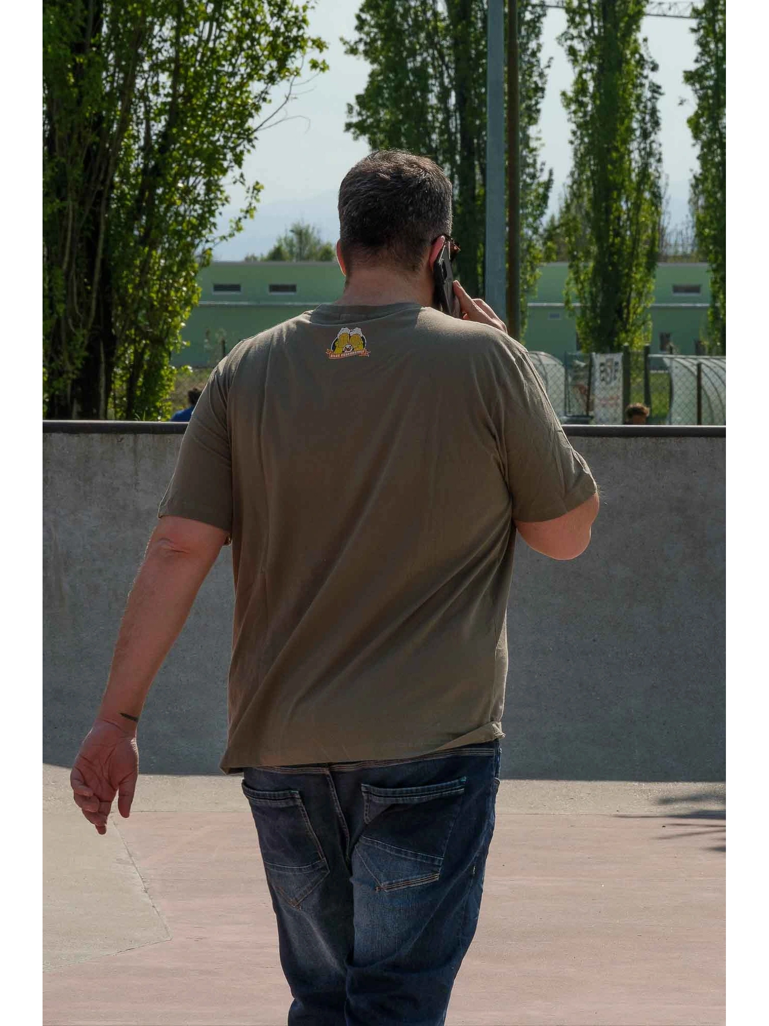 SHORT-SLEEVED COTTON JERSEY T-SHIRT, FRONT PRINT WITH HOMER SIMPSON GRAPHIC AND DUFF BEER LOGO, CREW NECK, COMFORTABLE FIT, STRAIGHT HEM. AVAILABLE IN TWO COLORS: MILITARY GREEN AND NAVY BLUE. SIZES 2XL-8XL 100% COTTON A T-SHIRT DEDICATED TO THE MOST ICONIC BEER FAN: HOMER SIMPSON! WEARING IT MEANS BRINGING A TOUCH OF HUMOR AND POP SPIRIT TO YOUR EVERYDAY OUTFIT. PERFECT FOR THOSE WHO WANT TO SMILE AT LIFE, ONE BEER (DUFF) AT A TIME! “MMM… DUFF!”