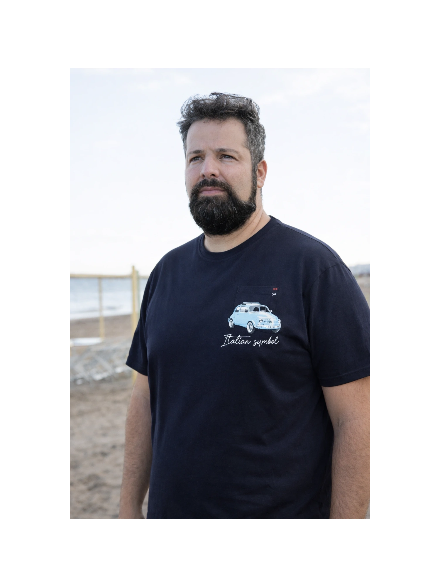 UN CAPO CHE SA DI STRADE ASSOLATE E VIAGGI SENZA DESTINAZIONE, DOVE OGNI DETTAGLIO RACCONTA UNA STORIA. LA GRAFICA SUL TASCHINO È UN PICCOLO MONDO DA PORTARE ADDOSSO: UN RICHIAMO ALL’ICONA, ALLA LIBERTÀ, A QUELLO STILE ITALIANO CHE NON CHIEDE PERMESSO.