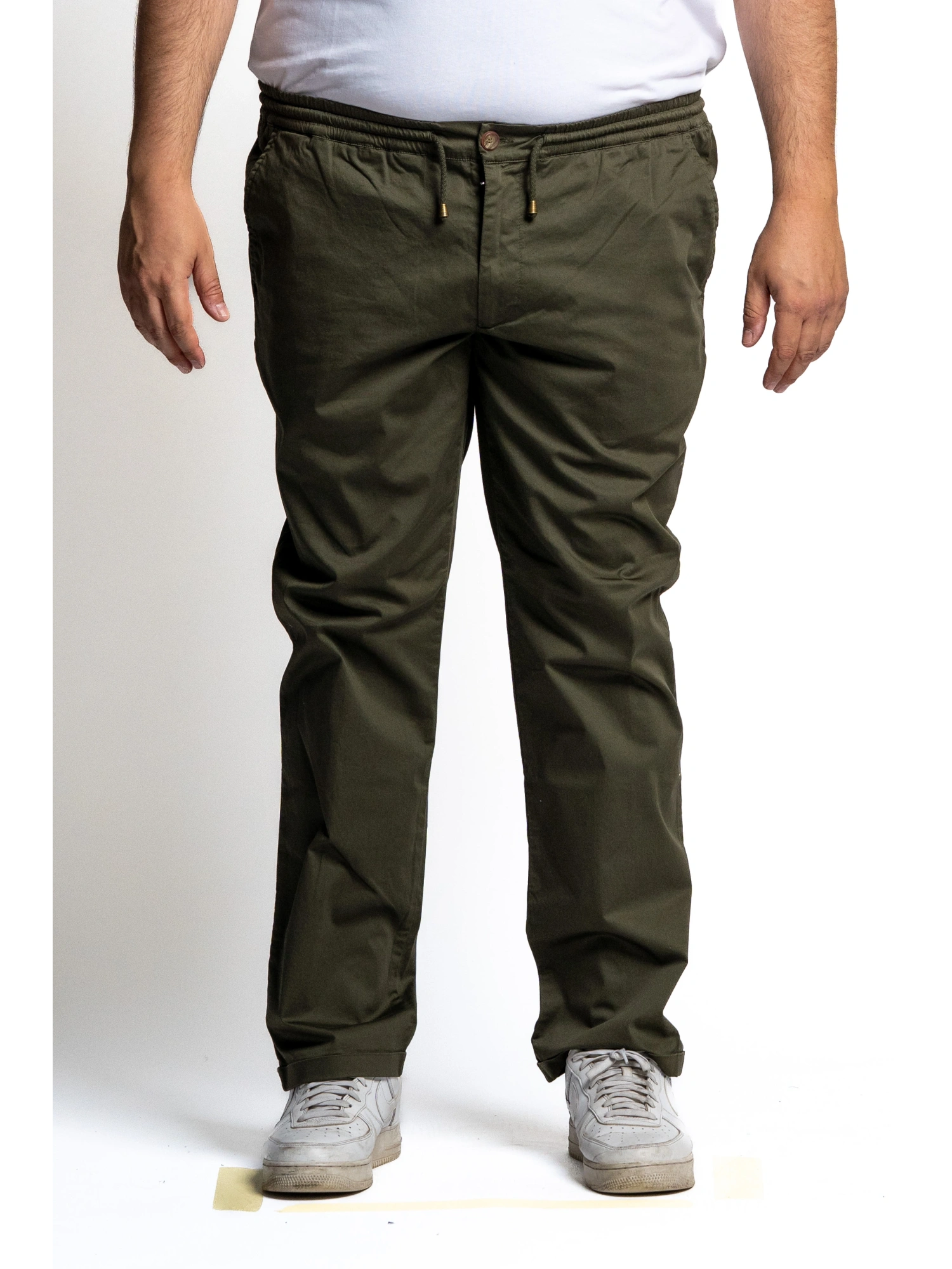 STRETCH TROUSERS WITH A REGULAR FIT AND STRAIGHT LEG. ELASTICATED WAIST WITH DRAWSTRING AND METALLIC TIPS, BUTTON CLOSURE, SIDE POCKETS AND TWO BACK WELT POCKETS WITH BUTTONS. ROLLED-UP BOTTOM FOR A CLEAN, NEAT CUT. SIZES 2XL - 10XL COMPOSITION 99% COTTON 1% ELASTANE TROUSERS THAT INSTANTLY CREATE A “FINISHED LOOK”: CLEAN LINES, RIGHT DETAILS, AND THAT EASY-CHIC TOUCH THAT GOES FROM DAYTIME TO APERITIF WITHOUT CHANGE. YOU PUT THEM ON, TIGHTEN THE DRAWSTRING, AND YOU EXPERIENCE A CAUSELESS, CITY-RELAXED ELEGANCE. ONE PANT, A THOUSAND OPPORTUNITIES.