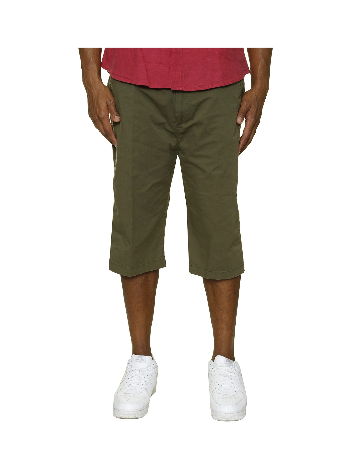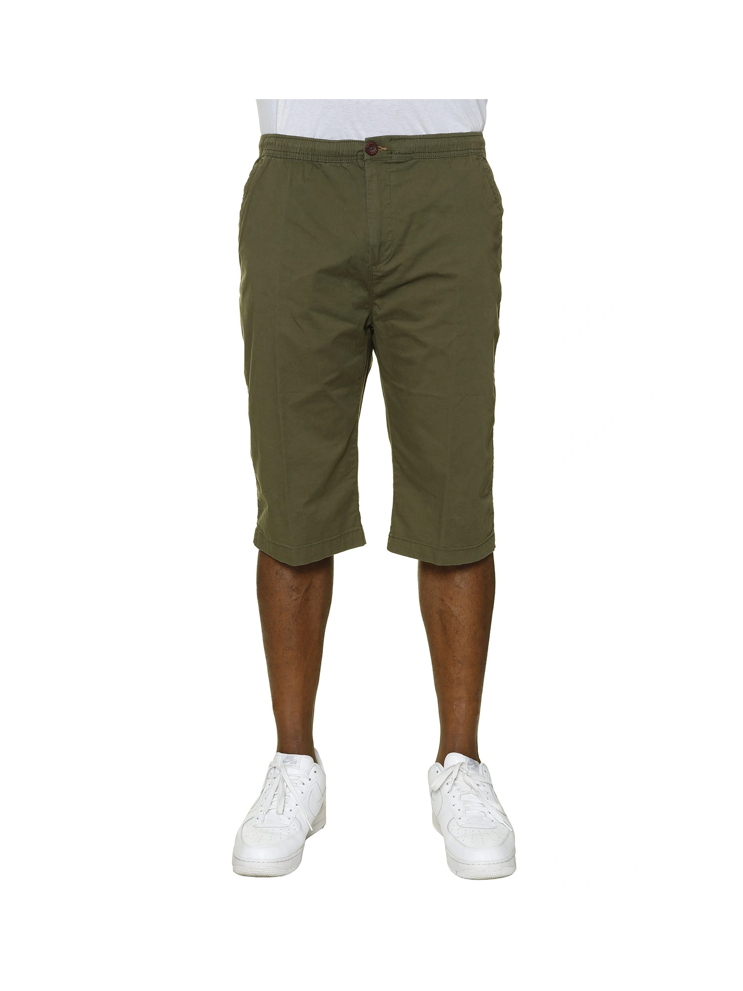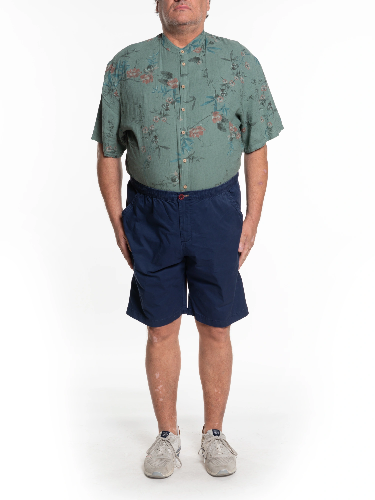 MODELLO BERMUDA IN COTONE ELASTICIZZATO LUNGHEZZA SOTTO IL GINOCCHIO VITA ELASTICIZZATA CON COULISSE INTERNA CHIUSURA CON BOTTONE E ZIP DUE TASCHE LATERALI UN TASCHINO POSTERIORE A FILETTO CON BOTTONE COMPOSIZIONE 98% COTONE 2%ELASTAN