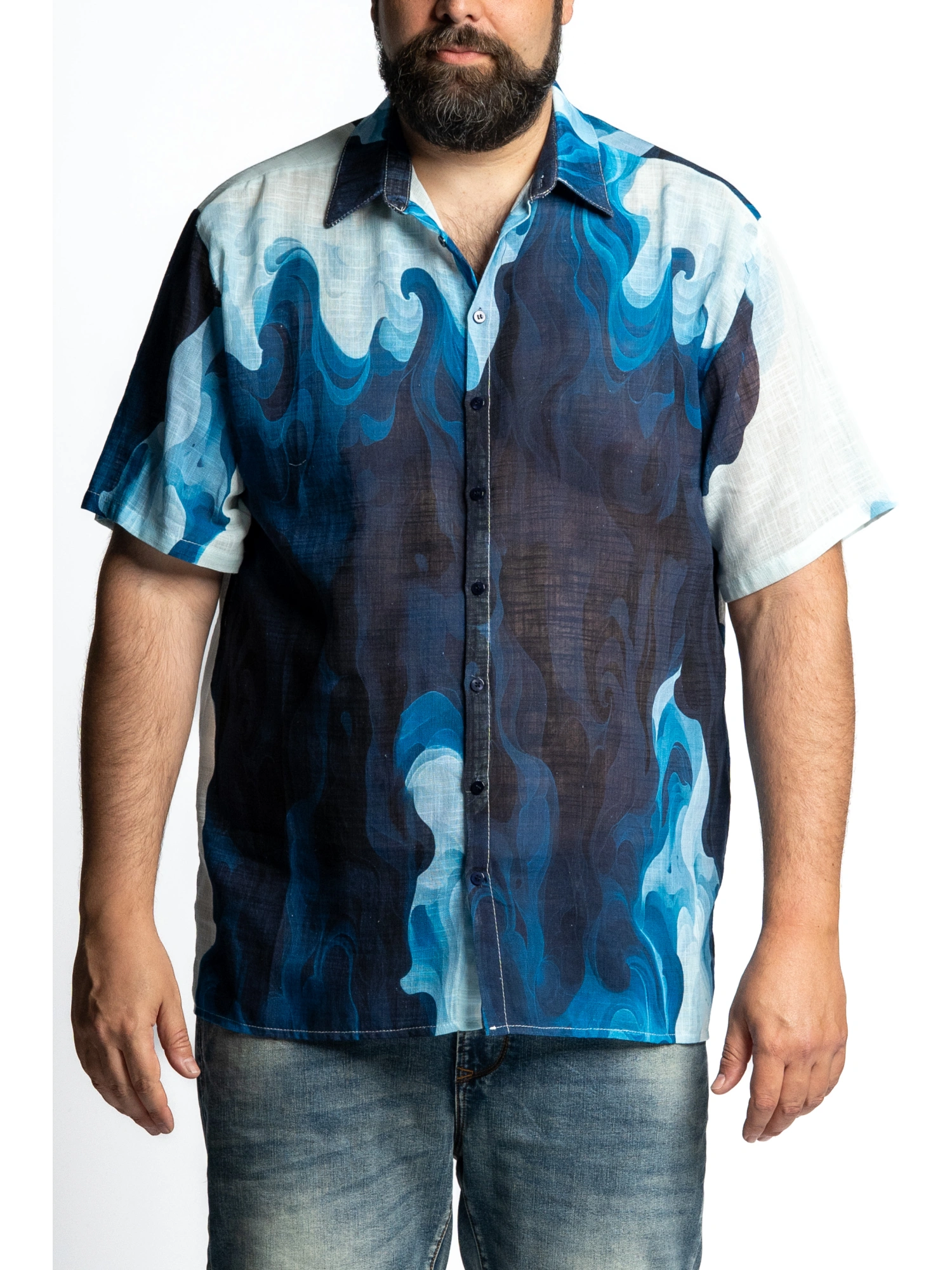 CAMICIA ESTIVA A FANTASIA MAXFORT, REALIZZATA IN TESSUTO LEGGERO E TRASPIRANTE. MODELLO A MANICA CORTA CON COLLO CLASSICO, CHIUSURA FRONTALE CON BOTTONI E LINEA MORBIDA CHE SCENDE DRITTA PER UNA VESTIBILITÀ COMODA.