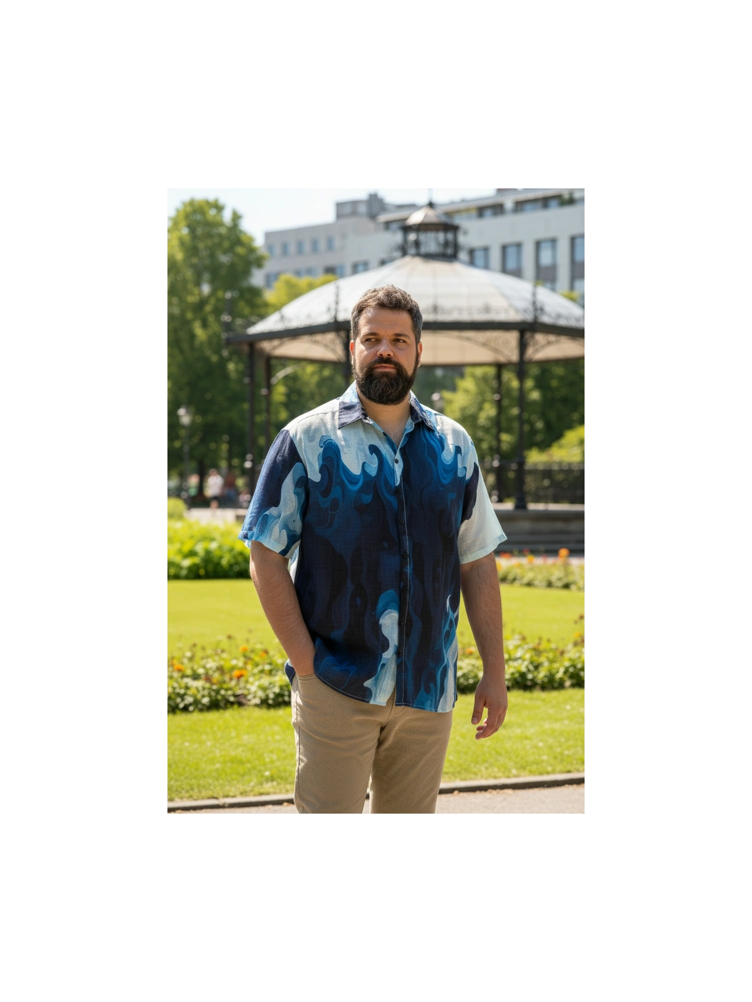 È UNA CAMICIA CHE NON “COMPLETA” IL LOOK: LO GUIDA. LE FANTASIE FANNO DA COLONNA SONORA ALL’ESTATE — ONDE BLU PER CHI VUOLE UN’ENERGIA PULITA, PESCI SU GIALLO PER CHI AMA FARSI NOTARE CON IRONIA, E IL DISEGNO SMERALDO PER CHI PREFERISCE UN’ELEGANZA LEGGERA MA CON CARATTERE.