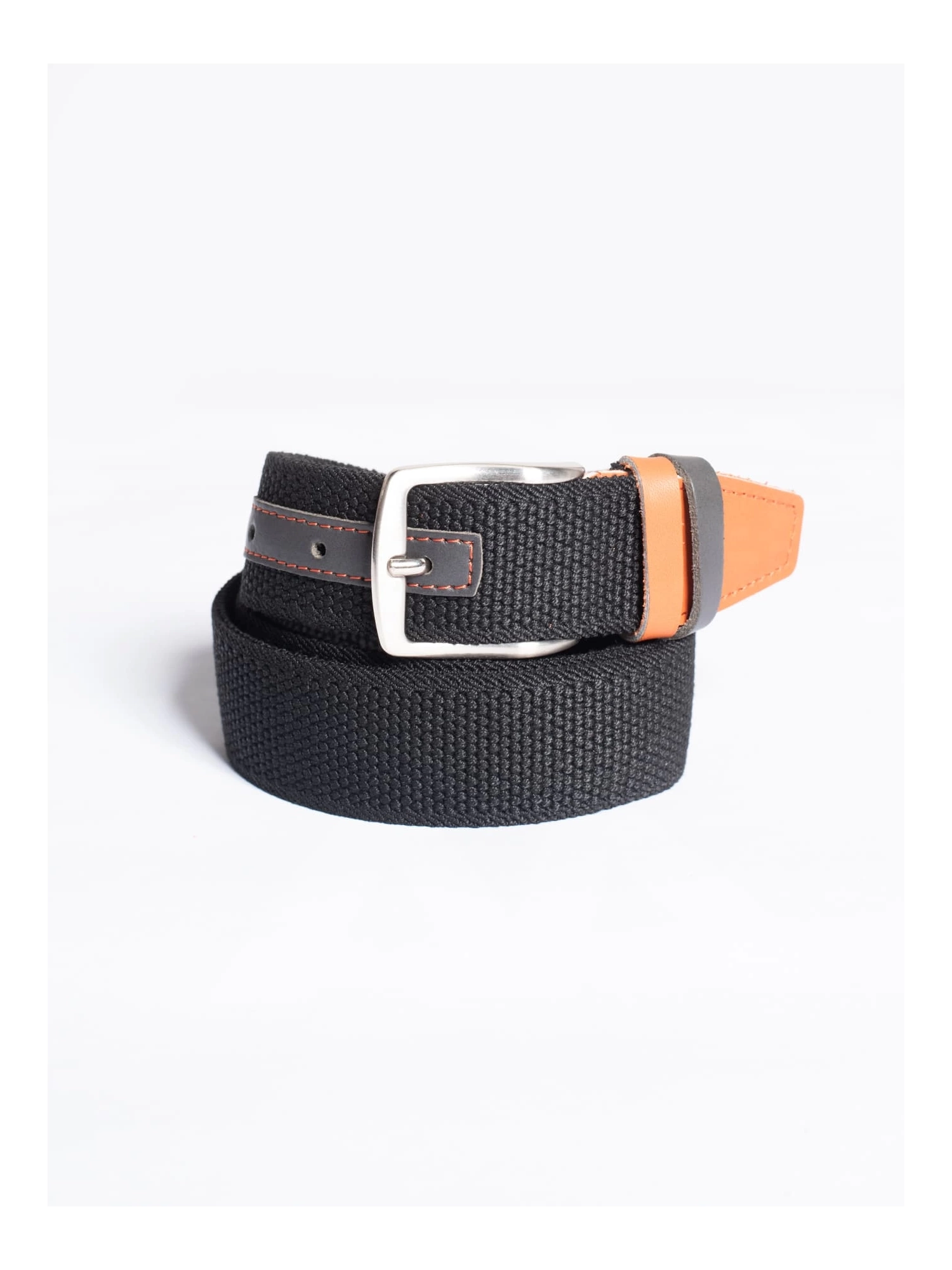 CINTURA REALIZZATA IN POLYESTER INTRECCIATO, RESISTENTE E FLESSIBILE, CON DETTAGLI IN ECOPELLE COLORATA. FIBBIA IN METALLO SILVER E PASSANTI IN CONTRASTO PER UN TOCCO DINAMICO E MODERNO.