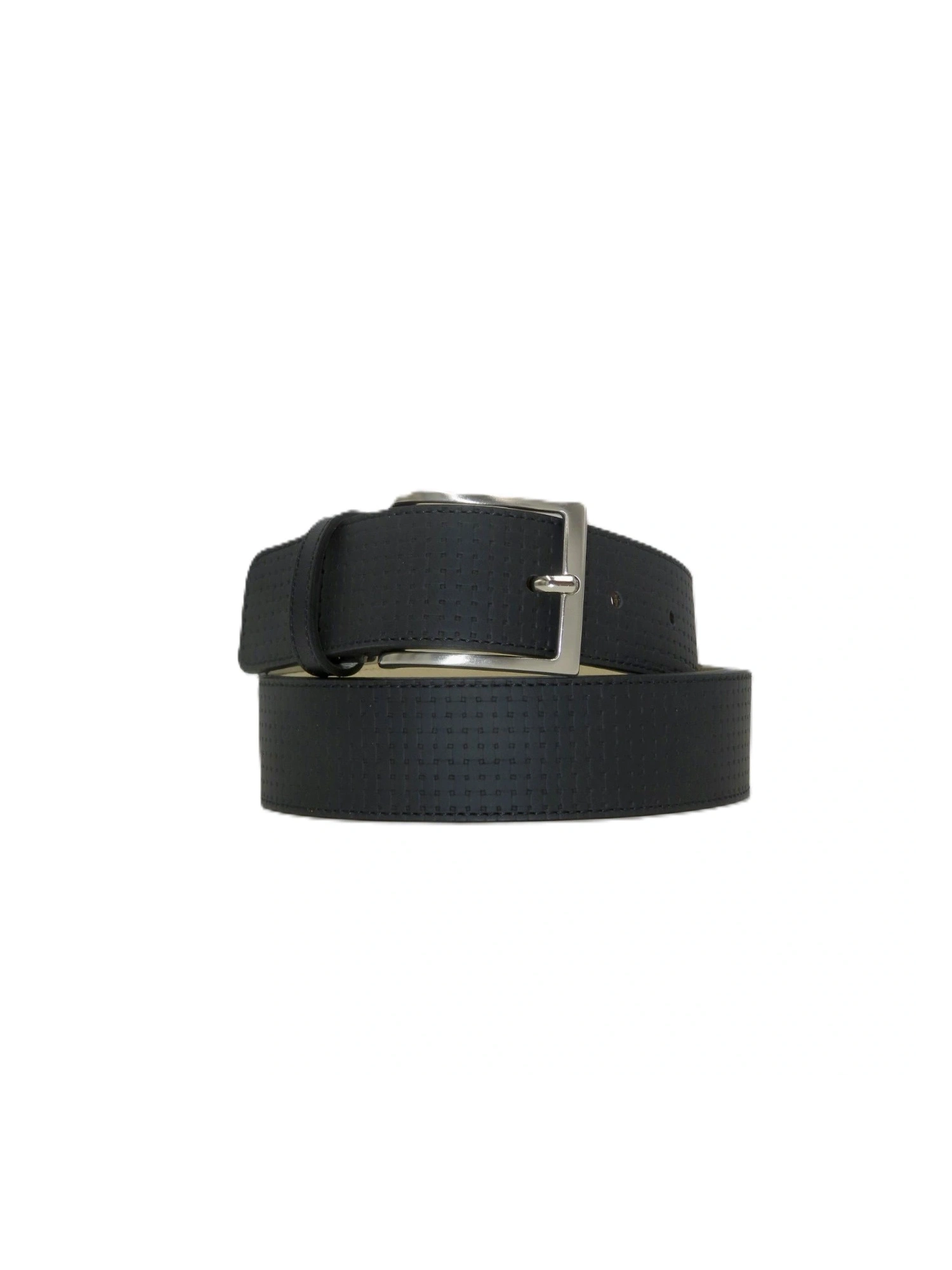 CINTURA UOMO IN POLYESTER STAMPATO, CON TRAMA GEOMETRICA IN RILIEVO CHE DONA UN ASPETTO MODERNO E DISTINTIVO. FIBBIA METALLICA CLASSICA CON FINITURA LUCIDA, PASSANTE COORDINATO E PUNTA LINEARE. DISPONIBILE IN VARIANTI COLORE VERSATILI COME BLU E NERO, PERFETTA PER UN TOCCO DI ORIGINALITÀ SENZA RINUNCIARE ALLA PRATICITÀ.