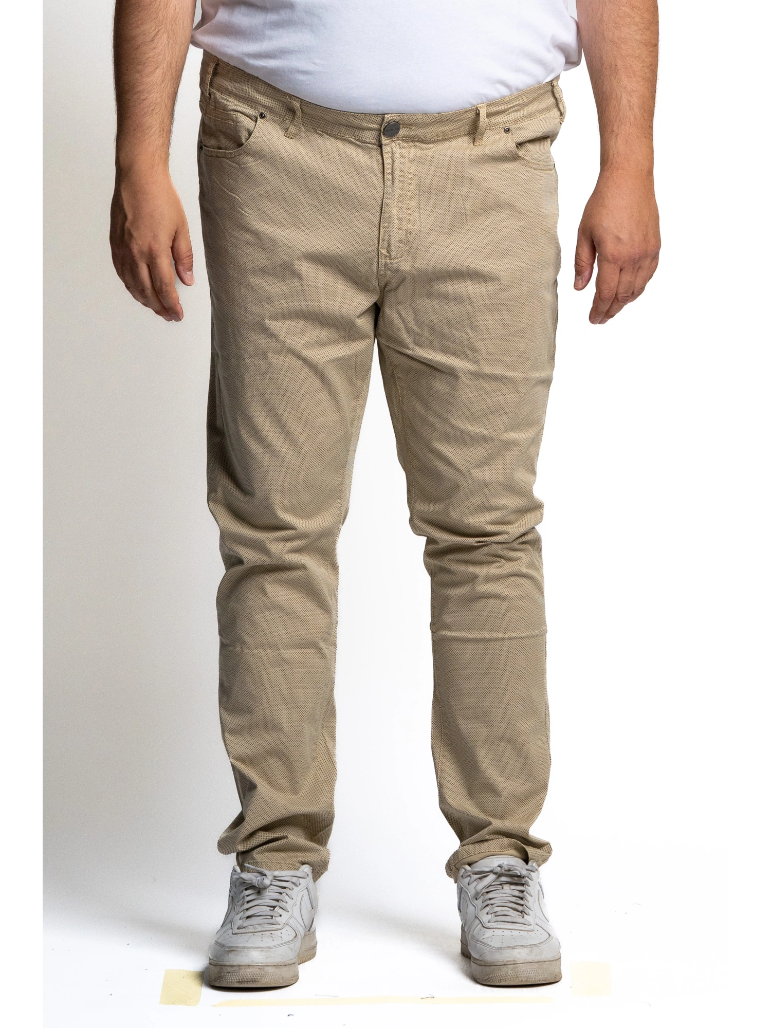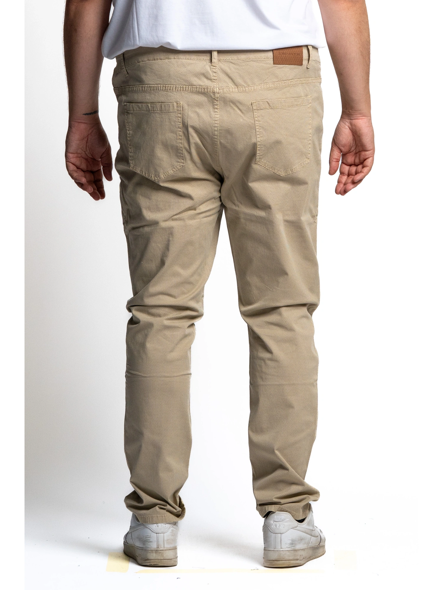 PANTALONE 5 TASCHE IN TESSUTO STRETCH STAMPATO A MICRO-MOTIVO. CHIUSURA CON BOTTONE E ZIP. PASSANTI IN VITA. TASCHE FRONTALI CON TASCHINO PORTAMONETE E RIVETTI DI RINFORZO. TASCHE POSTERIORI APPLICATE. ETICHETTA/PATCH POSTERIORE IN VITA. GAMBA DRITTA CON VESTIBILITÀ PULITA E FONDO REGOLARE.