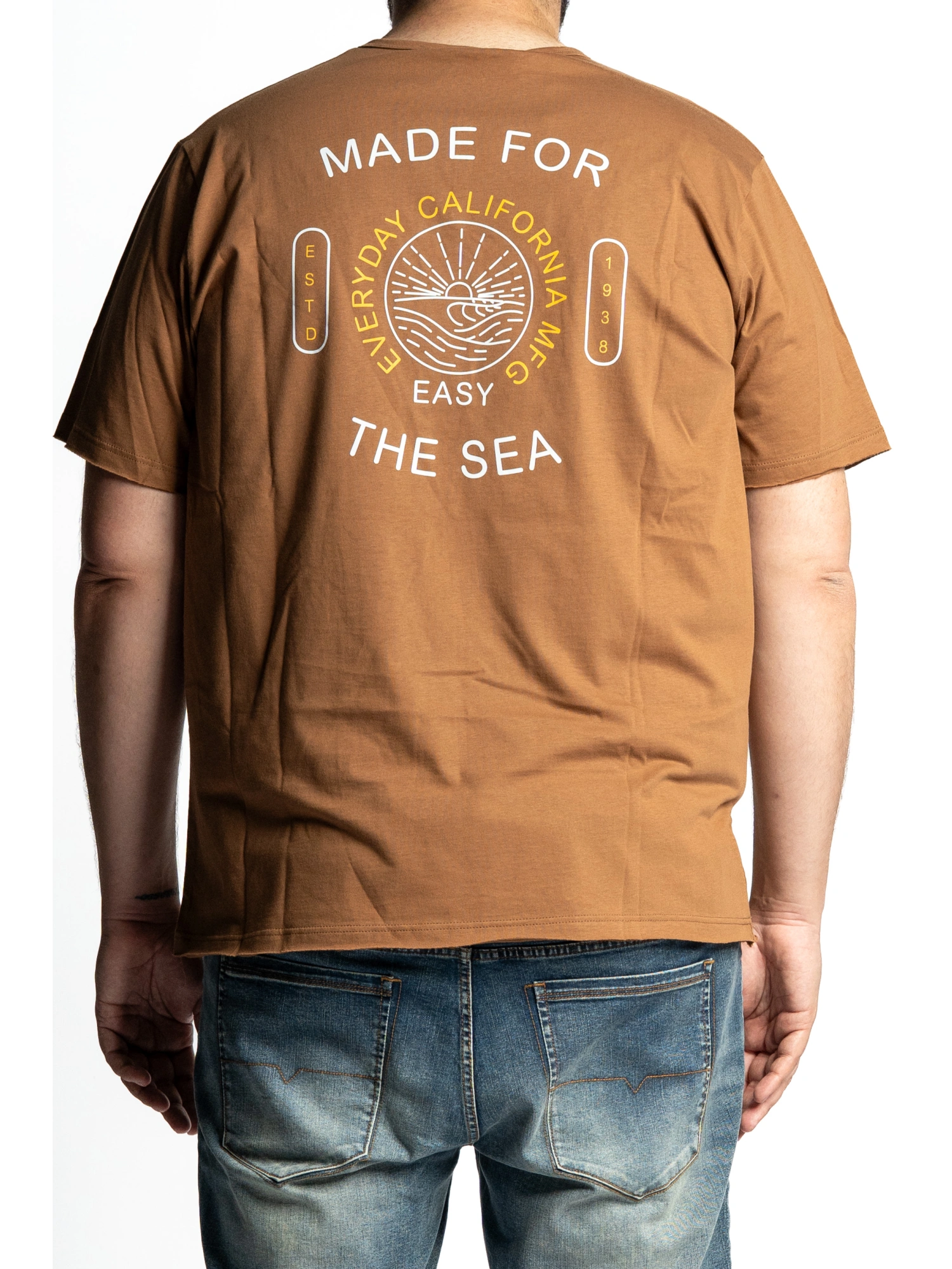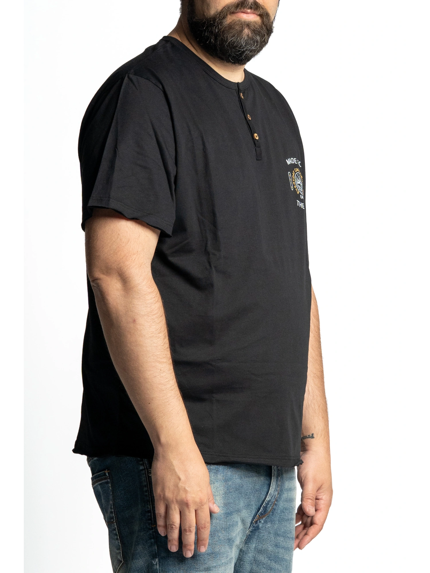 T-SHIRT SERAFINO A TRE BOTTONI, MEZZA MANICA, STAMPA GRAFICA FRONTALE E POSTERIORE “MADE FOR THE SEA – EVERYDAY CALIFORNIA” CON ELEMENTI MARINI IN STILE SURF. FONDO DRITTO, DETTAGLI CURATI PER UN LOOK RILASSATO DAL SAPORE ESTIVO. TAGLIE XL - 8XL COMPOSIZIONE 100% COTONE UNA MAGLIETTA CHE PROFUMA DI SALE, DI LIBERTÀ E DI TRAMONTI SULL’OCEANO. QUESTA T-SHIRT RACCONTA UN’ESTATE SENZA FINE, TRA VIBRAZIONI CALIFORNIANE E SPIRITO MARINO. PER CHI SI SENTE A CASA TRA LE ONDE, SULLA SABBIA O A BORDO DI UN’AVVENTURA NUOVA OGNI GIORNO. NATO PER IL MARE, FATTO PER STARE BENE.