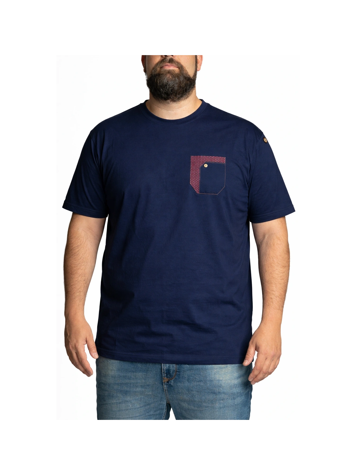 T-SHIRT GIROCOLLO A MANICA CORTA IN TINTA UNITA NERA, CARATTERIZZATA DA LINEA PULITA E VESTIBILITÀ CONFORTEVOLE. IL MODELLO PRESENTA TASCHINO APPLICATO SUL PETTO CON DETTAGLIO COMBINATO: PROFILO SUPERIORE E INSERTO LATERALE IN FANTASIA MICROGEOMETRICA A CONTRASTO, PARTE FRONTALE IN NERO COORDINATO E PICCOLO BOTTONE DECORATIVO. COMPLETA IL CAPO IL PATCH LOGATO SULLA MANICA, PER UN TOCCO DISTINTIVO MA MISURATO.